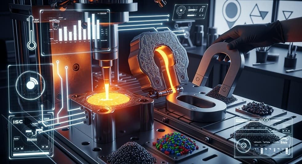 Sie stellen spritzgegossene Magnete her, indem Sie Magnetpulver mit einem Polymerbindemittel vermischen. Die meisten Unternehmen verwenden ein Mischungsverhältnis von 85:15 bis 95:5 (Gewichtsanteile). Diese Mischung sorgt für eine hohe Magnetkraft und gute Festigkeit. Sie bereiten die Materialien vor, mischen sie und füllen sie in Formen. So können Sie Magnete in vielen Formen und Größen herstellen. Sie erhalten ein Produkt, das speziellen Anforderungen entspricht und exakte Eigenschaften aufweist.